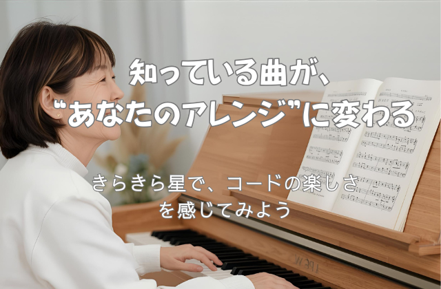 「きらきらぼし」って、原曲が有るので、それに和音をつけるだけでも立派なアレンジなんです。あまりに専門性を追求せず、まず弾けないと意味がないので、コードの順番だけでも出来るようにしましょう。