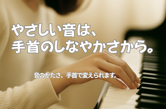 普段の演奏でも、手首を柔らかくして演奏すると、音が柔らかく切れます。