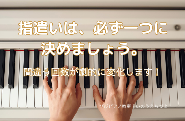 曲を弾く度に、指遣いが変わっていたら、音は分かっていても、指がウロウロとするので、弾き間違いが増えるんです。