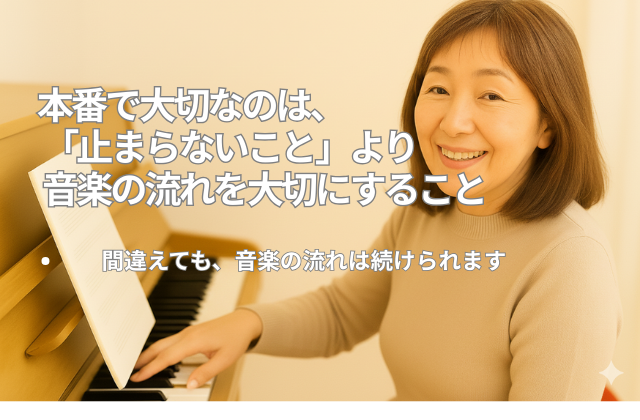 本番前の練習は、止まらない・弾き直さない練習をしましょう。