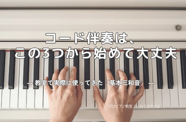 まずは、3つの基本の和音(コード)を覚えれば十分です。3つの基本の三和音というのは、その調の中で作られている、【Ⅰ・Ⅳ・Ⅴ】の和音の事です。