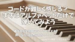 コードの“sus4(サスフォー)”って聞いたことありますか?実は、いつものコードの形を少し変えるだけで、ふわっと浮くような不思議な響きが作れます。今回の記事では、sus4の仕組みと使い方を、大人ピアノ初心者さんにもわかりやすく解説します。