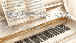 初見が苦手なのは、才能のせいではありません。指・鍵盤の感覚・譜読みという3つの土台を整えることで、初見は少しずつ楽になります。大人の初心者さんにもやさしく解説します。