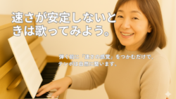 練習方法 早く弾くには歌ってみるという方法があります。口ずさむだけでも速さを上げるには有効です。 曲の速度がなかなか上げられないという人に向けて書いています。メトロノームを使わなくてももっと手軽に取り組める方法です。 練習方法