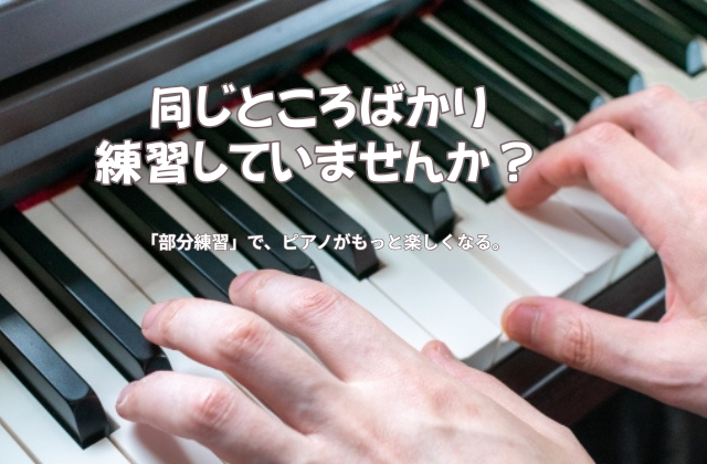 その部分だけを繰り返して練習という方法をとらないと、最初から延々に繰り返す練習方法だと、すでに弾けている部分も何回も繰り返す事になって、弾けないところは弾けないままになってしまうんですね。