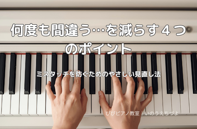 最後に、間違った瞬間、手を止めて、押さえている鍵盤を見てみるという方法をしています。
