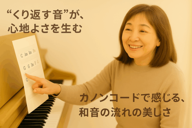 「カノンコード」とは、“カノンの技法”をもとに作られた曲で使われる**和音の並び(コード進行)**のことです。