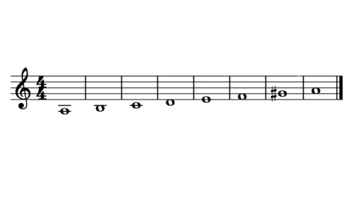 これで、例:イ短調の和声短音階ができました。