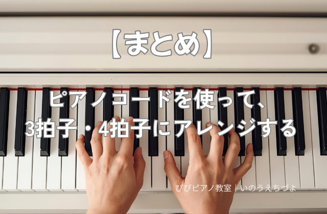 ピアノコードを使ったアレンジは、まずは、2拍子・3拍子・4拍子などのカンタンなものからしてみて下さい。