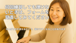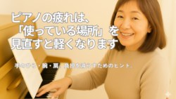 ピアノを弾いていて「手が痛い」「指が痛い」「肩がこる」…そんなお悩みはありませんか?実はその痛み、手の形や椅子の高さを少し変えるだけでグッとラクになることがあります。この記事では、演奏フォームの見直しポイントをわかりやすく解説します。