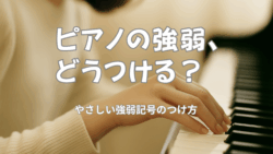 弾き方のポイント(初心者) ピアノでの強弱記号のつけ方|初心者でも音に表情が生まれるコツ ピアノの強弱記号がうまくつけられない方へ。大きい音・小さい音の正しい出し方、強弱の差を自然につけるコツを、初心者にもやさしく解説します。音に表情が出て、曲がぐっと生きるようになります。 弾き方のポイント(初心者)
