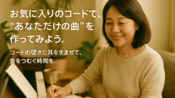 音楽の知識 お気に入りのコード進行を使って、曲を作ってみよう。 好きなコード進行を使えば、誰でも簡単に作曲できる!初心者さん向けに、構成音の調べ方やメロディの作り方をわかりやすく解説。童謡の例つきで安心スタート♪ コード弾き音楽の知識